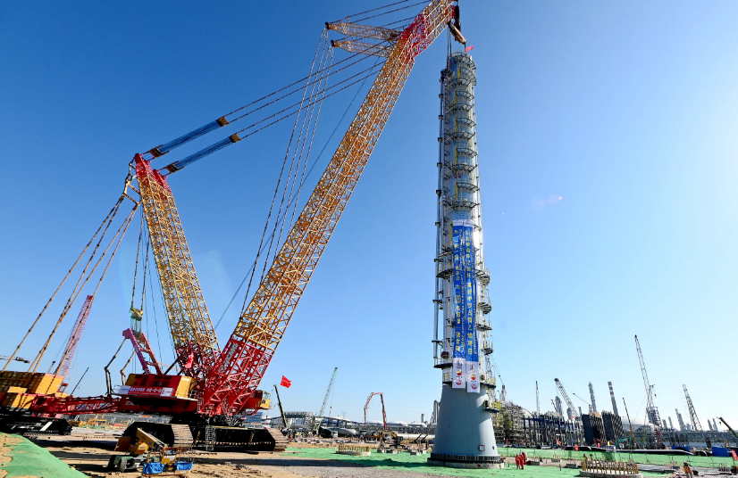 2024年12月20日,上午10时17分许,乙烯塔吊装正式开始。吊装现场,采用XGC88000型4000吨履带式起重机作为主吊,用XGC500-1型500吨履带式起重机抬尾。两台吊车紧密配合,随着吊臂的精准旋转,塔器的裙座螺栓孔逐渐与基础的...